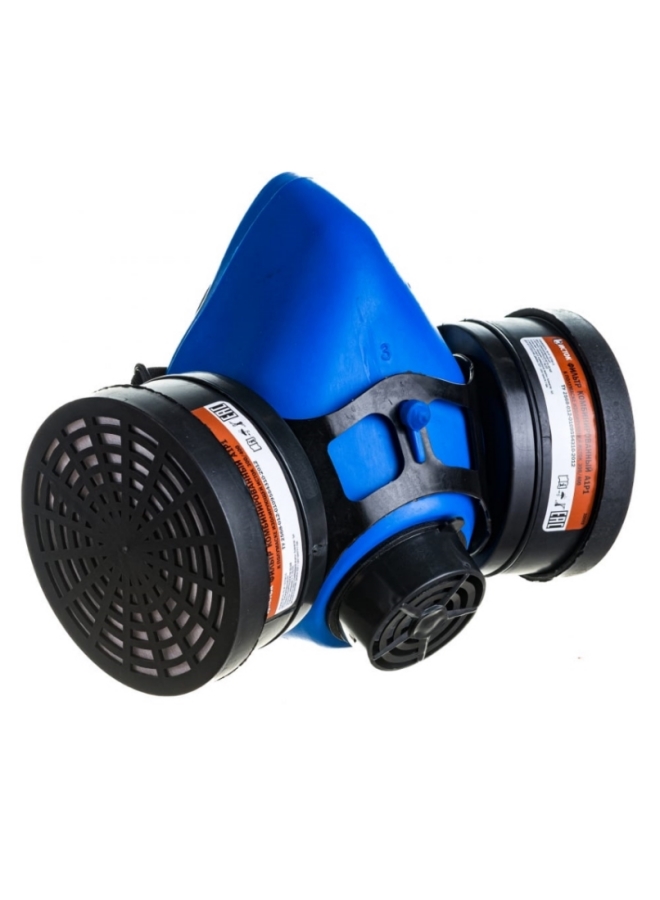 Модель: полумаска из мягкого гипоаллергенного эластомера с двумя сменными фильтрами А1Р1. Герметичная изоляция по всей линии обтюрации. Регулируемое оголовье.
