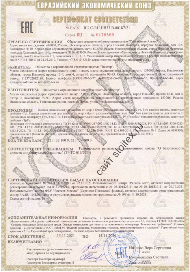Сертификат соответствия №ЕАЭС 0178599